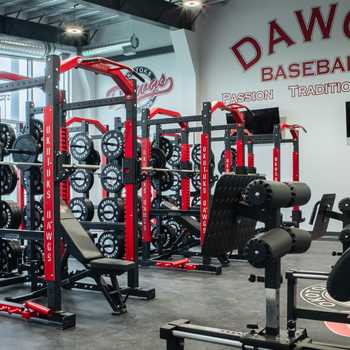 The Duvernay Fieldhouse is located immediately adjacent to the Ircandia Outdoor Training Centre just off of 1st base on the home side of Seaman Stadium. The facility includes a turf infield, 2 batting cages and multiple pitching mounds. The Fieldhouse also features a locker room with custom lockers, a complete weight and cardio training room including treadmills, squat racks, GHD machines, benches, dumbbells and a universal cable machine. In addition, the Fieldhouse includes coaching and administrative offices, multiple showers and washroom facilities, a hospitality area with a Dawgs “Wall of Fame” celebrating Dawgs players drafted by Major League Baseball organizations, and an audio visual room for analysis of hitting, pitching and fielding mechanics.